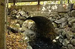 The Newichawannock Canal is a man-made canal which drains Great East Lake into Horn Pond at the border between Wakefield, New Hampshire, and Acton, Maine, in the northeastern United States. It is at the head of the Salmon Falls River, which the Abenaki called Newichawannock, meaning "river with many falls". Begun in 1850 by the Great Falls Company to increase the water available for its mills in Somersworth, New Hampshire,[2][3] the 0.75-mile (1.21 km) canal is unusual as it was built for strictly industrial purposes in an area remote from the actual industrial site. The canal forms the boundary between the states of New Hampshire and Maine, and is spanned by a stone bridge built at the same time.[3] The canal and bridge, along with related artifacts, were listed on the National Register of Historic Places in 2014.[4]