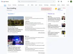 - ^ "Redesigning Google News for everyone". June 27, 2017. Archived from the original on July 3, 2017. Retrieved July 3, 2017.