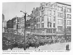 Newspaper Row was a newspaper district along fourth street in Minneapolis. It served as the headquarters of the Saturday Evening Spectator, the Minneapolis Journal, Minneapolis Tribune, Minneapolis Penny Press, and the Minneapolis Times, and held the Minneapolis offices of the St. Paul Globe and The Pioneer Press.[1][2][3]