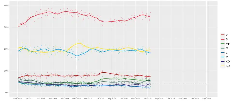 | L | Liberals | Conservative liberalism | Centre-right | Simona Mohamsson | 4.6% | 16 / 349