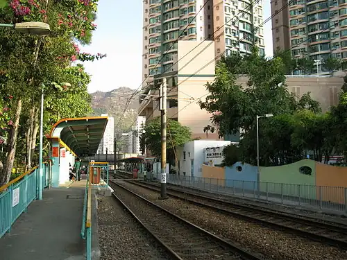 Ngan Wai (Chinese: 銀圍) is an at-grade MTR Light Rail stop located at Chak Fung Street, between Affluence Garden and Chelsea Heights, in Tuen Mun District. It began service on 18 September 1988 and belongs to Zone 2.[1]