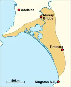 According to David Horton's map "Aboriginal Australia", the Ngarrindjeri lands lie along the Coorong coastline, from Victor Harbor on the southern Fleurieu Peninsula in the north, to Cape Jaffa in the south.[12] According to the map, the lands extend inland just north of Murray Bridge, receding to a 15-to-20 km (9.3-to-12.4 mi) wide coastal strip west of the Murray River lower lakes, but extending further inland in the south to a point near the state border at Coonawarra. The lands include both of the Murray lower lakes, Lake Alexandrina and Lake Albert.