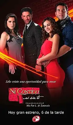 Ni contigo... ni sin ti (English title: With You, Without You)[4] is a Spanish-language Mexican telenovela produced by Mapat L. de Zatarain for Televisa.[5] It premiered on February 28, 2011 and ended on August 26, 2011.[6]