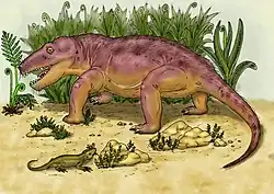 The classification of Niaftasuchus is considered problematic.[2] It is assigned to a family of its own, Niaftasuchidae. Ivakhnenko, who first described Niaftasuchus, regards it as a basal dinocephalian, whereas Battail and Surkov classified Niaftasuchus in Biarmosuchia. It is also possible that it belongs to neither lineage, and forms a distinctive therapsid group of its own.[4][5]
