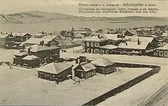 Nikolayevsk-on-Amur (Russian: Никола́евск-на-Аму́ре, romanized: Nikoláyevsk-na-Amúrye) is a town in Khabarovsk Krai, Russia located on the Amur River close to its liman in the Pacific Ocean. Population: 17,815 (2024);[9] 22,752 (2010 Census);[2] 28,492 (2002 Census);[10] 36,296 (1989 Soviet census).[11]
