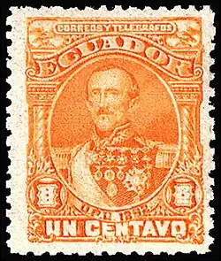 Seebeck emigrated from what is now Germany to the United States at the age of 9. He soon established himself as a stamp dealer and cataloguer (as a sideline to owning a stationery and printing shop) in New York City, and published the Descriptive Price Catalogue of All Known Postage Stamps of the United States and Foreign Countries in 1876.[1] In 1879, he began printing stamps for the Dominican Republic and the Colombian State of Bolivar. These stamps were printed under a standard sort of printing contract, where he received a fee for printing a specified number of stamps. However, with the Bolivar issues, he began the soon to be infamous practice of year-dating otherwise identical stamp designs. Seebeck was successful enough to be able to sell his business in 1884 and purchase a significant interest in the Hamilton Bank Note Engraving and Printing Co., whose main contract was for printing tickets for the New York City transportation system.