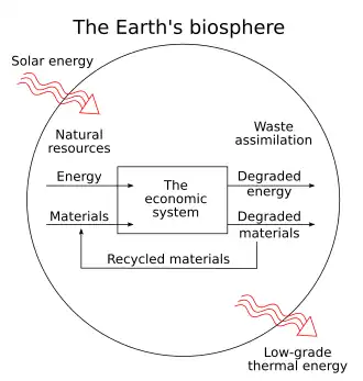 - ^ a b c Ayres, Robert U. (1999). "The second law, the fourth law, recycling and limits to growth" (PDF). Ecological Economics. 29 (3): 473–483. Bibcode:1999EcoEc..29..473A. doi:10.1016/s0921-8009(98)00098-6. hdl:10068/4266.