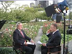 ![]() Haysom sitting for a 2009 interview with Talal Al-Haj (right) | |