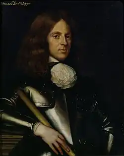 Nicholas Spencer sailed from London to Westmoreland County, Virginia, during the tobacco boom of the 1650s, and became agent for his cousin John Colepeper, 1st Baron Colepeper.[14] Colepeper had inherited his father's share of ownership in the Virginia Company in 1617, and was subsequently knighted and afterwards raised to the peerage. He became the one-seventh proprietor of the Northern Neck of Virginia under the charter of 1649. Colepeper never lived in the colonies, and his son Thomas Culpeper, 2nd Baron Culpeper of Thoresway, who lived at Leeds Castle, did not arrive in Virginia until 1680, twenty years after the tobacco boom ended in a bust prompted by wars with the Dutch and French and the Navigation Act of 1660. Nicholas Spencer had sailed to Virginia to help oversee his cousin John's investment, helping to colonize the frontier during the English Civil War in the mother county, and would survive Bacon's Rebellion.