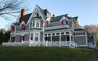 The Nichols House is a historic house in Newton, Massachusetts. Built in 1897, this 2+1⁄2-story wood-frame house is one of the city's finest examples of Stick style architecture. It features numerous steeply pitched gables typical of the style, some of which are elaborately decorated with applied wood trim. The main entry is sheltered within a decorated porte cochere. J. Howard Nichols, the owner, was a wealthy merchant in the China trade.[2]