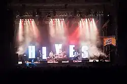 ![]() The Hives performing in July 2018; from left to right: Vigilante Carlstroem, The Johan and Only, Howlin' Pelle Almqvist, Chris Dangerous, Nicholaus Arson | |