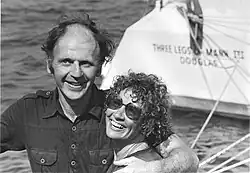 ![]() Nick Keig, alongside his late wife, in front of sailing yacht 'Legs of Man III'. | |