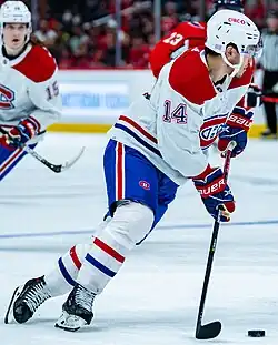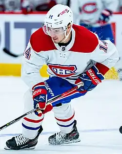 Nicholas Suzuki (born August 10, 1999) is a Canadian professional ice hockey centre and captain for the Montreal Canadiens of the National Hockey League (NHL). He was selected in the first round, 13th overall, by the Vegas Golden Knights in the 2017 NHL entry draft. Known for his craftiness, Suzuki earned the nickname "Slick Nick".[1]