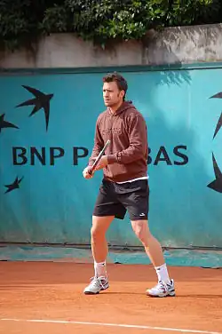 Nicolas Kiefer (German pronunciation: [ˈnɪkolas ˈkiːfɐ];[1][2] born 5 July 1977) is a German former professional tennis player. He reached the semifinals of the 2006 Australian Open and won a silver medal in men's doubles with partner Rainer Schüttler at the 2004 Athens Olympics. Kiefer's career-high singles ranking was world No. 4, achieved in January 2000.