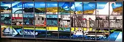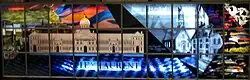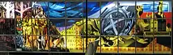 At the same time, he pursued a career in the art of stained glass which will give rise to numerous achievements. His best-known work is La Vie à Montréal in the 19th Century, a composition of five large stained-glass windows with a total length of 30.5 meters installed at the McGill Métro station.[4] Between 1976 and 1979 in Montreal, he directed the restoration of Château Dufresne, the future museum of decorative arts in Montreal.[5][1]