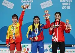 ![]() Karasakal (right) with Katherin Oriana Echandia Zarate and Nguyễn Thị Thu Trang at the 2018 Summer Youth Olympics | |||||||||||||||