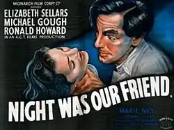 Night Was Our Friend is a 1951 British second feature ('B')[1] drama film directed by Michael Anderson and starring Elizabeth Sellars, Michael Gough and Ronald Howard.[2] It was written by Michael Pertwee based on his 1951 play of the same name. The title references a line from Virgil's epic poem The Aeneid.