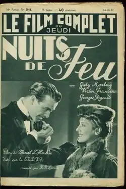 Nights of Fire (French: Nuits de feu) is a 1937 French drama film directed by Marcel L'Herbier and starring Gaby Morlay, Victor Francen and Madeleine Robinson.[1][2]