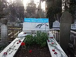 Hüseyin Nihâl Atsız (January 12, 1905 – December 11, 1975)[5] was a prominent Turkish ultranationalist writer, novelist, and poet. Atsız self-identified as a racist, Pan-Turkist, Turanist[6][7][8][a], and was the ideologue of Atsızism. He was the author of over 30 books and numerous articles and was in strong opposition to the government of İsmet İnönü, which he criticized for co-operating with the communists.[11] He was accused of being a sympathizer of Nazi Germany and plotting to overthrow the Turkish government.[6][12][13]