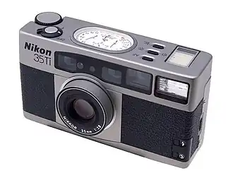 The Nikon 35Ti (1993) and Nikon 28Ti (1994) are luxury titanium-clad point and shoot cameras that were produced by Nikon, equipped with a high-quality lens and body, competing with similar luxury compact cameras produced during the Japanese bubble-economy era, including the Contax T line, Konica Hexar, Leica minilux, Minolta TC-1, Ricoh GR series, and Rollei QZ 35W/35T. Both the 35Ti and 28Ti are 35 mm cameras with nearly identical operation; as the name implies, the 35Ti is equipped with a 35 mm focal length lens, while the 28Ti is equipped with a 28 mm lens. Externally, they may be distinguished by their color: the 35Ti is finished in chrome/silver, and the 28Ti is finished in black.