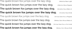 While the design of the characters is based on Neue Helvetica, the two typefaces differ metrically: Nimbus Sans Novus has smaller x-height and is narrower at the same font size (but not at the same x-height).
