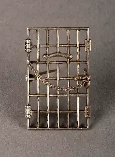 Allender designed the "Jailed for Freedom" pin, which was bestowed on women who were jailed beginning July 1917 for their campaigning and picketing activities. It was named Amelia Himes Walker's "Jailed for Freedom" pin in acknowledge the two-month period when the woman's rights activist was imprisoned in the Occoquan Workhouse and the incarceration and abuse that had been suffered by other suffragettes.[58]