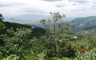 Ninh Thuận's topography is typical for the South Central Coast in that high mountains are located not only near the western border to the Central Highlands, but also near the coast, the highest of which is Chúa mountain (Vietnamese: Núi Chúa) at 1,040 metres (3,410 ft) in the north east of the province.[7] Several other peaks with heights up to 643 metres (2,110 ft), including Đá Bạc mountain (Vietnamese: Núi Đá Bạc) in the south, are located along the coast.[7] The highest mountains are located at the borders to Khánh Hòa province and Lâm Đồng province, with three mountains of over 1,600 metres (5,200 ft) and the highest at 1,652 metres (5,420 ft), Sương Mù mountain (Vietnamese: Núi Sương Mù).[7] Only a small part of the province around Phan Rang has elevations of under 50 metres (160 ft).[8] The province's major river is the Dinh River, which flows through the main lowland of the province as well as Phan Rang. It has several tributaries in the province and is connected to Don Duong Lake in Lâm Đồng province.[7]