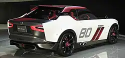 The Nissan IDx is a concept car introduced at the 2013 Tokyo Motor Show by Nissan.[6] It is supposedly inspired by the Datsun 510. The IDx is Nissan's answer to the "RWD tuner craze" that is ongoing and a direct competitor to the Hyundai Genesis coupe & Scion FRS/Subaru BRZ. The IDx is aimed at young buyers and racing gamers alike. A few quirks the car has that might not make production are the "side view mirrors" that are designed to be cameras rather than traditional mirrors as well as the side-exit exhaust.[7] There is a possibility that Nissan is building more IDx concepts because there are numbers (003 and 004) instead of 001 and 002 on each of the concepts. With Nissan's looming decision to discontinue several current models such as the Quest, Xterra, Cube and possibly the Juke there is expected room in Nissan's lineup for a new entry-level sports car.[7]