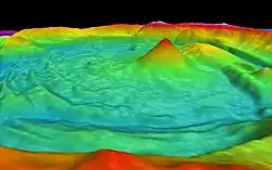 ![]() Bathymetry map of Niuatahi with 2 times vertical exaggeration | |