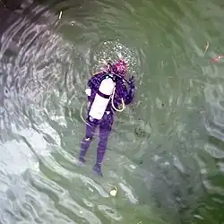 A diver on Lake Peten near Nixtun Chʼichʼ