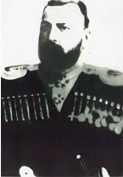 The Nizharadze were received among the princely nobility of the Russian Empire by the imperial decrees of 1850 and 1862.[4] Many of these nobles served in the Imperial Army of Russia.[1] Prince David Nizharadze (1853–1922) attained to a rank of general of the Russian army during World War I.[5]
