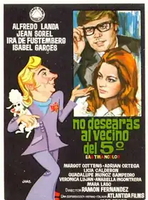 No desearás al vecino del quinto (Thou Shalt Not Covet Thy Fifth Floor Neighbor,[1] released in Italy as Due ragazzi da marciapiede) is a 1970 Spanish-Italian sex comedy film directed by Tito Fernández and starring Alfredo Landa, Jean Sorel, and Ira von Fürstenberg. A massive box office hit in Spain, the film became a linchpin for the mega-successful and profitable formula of Spanish sex comedies.[2]