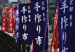 Nobori (幟) is a type of Japanese banner. They are long, narrow canvas flags, attached length-wise to a pole.[1] A cross-rod holds the fabric straight out to prevent it from furling around the rod; this way, the field is always visible and identifiable.