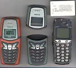 ![]() Nokia 5210 and its removable Xpress-On covers. | |