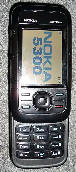 Nokia 5300 XpressMusic is a slider mobile phone by Nokia, part of the XpressMusic range. It was announced on 26 September 2006[2] alongside Nokia 5200 and released at the end of that year. It runs on Nokia Series 40 3rd Edition FP2.