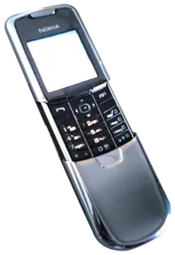 The Nokia 8800 (pronounced eighty-eight-hundred) is a luxury mobile phone produced by Nokia, based on the Nokia Series 40 operating system. The 8800 features a stainless-steel housing with a scratch-resistant screen and has a weight of 134 grams.[1][2] According to Nokia, the 8800's "sophisticated slide mechanism uses premium ball bearings crafted by the makers of bearings used in high performance cars".[5]