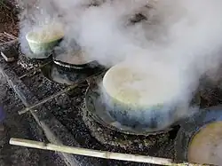Non-centrifugal cane sugar (NCS) is the technical name given to traditional raw sugar obtained by evaporating water from sugarcane juice. NCS is internationally recognized as a discrete and unique product by the FAO[1] since 1964 and by the World Customs Organization (WCO) since 2007. WCO defines NCS as "cane sugar obtained without centrifugation". It also states that "the product contains only natural anhedral micro-crystals, of irregular shape, not visible to the naked eye, which are surrounded by molasses' residues and other constituents of sugar cane". NCS is produced in most sugarcane-growing regions of the world, being known by many different names such as panela, jaggery, or gur.[2][3] Some varieties of muscovado are non-centrifugal.