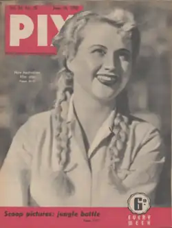 ![]() Nonnie Piper, star of Bitter Springs, on the cover of PIX in 1950 | |