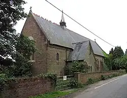 The Church of England parish church, Holy Trinity, is of brick in the Early English style, and was erected in 1865 as a chapel of ease to the parish church of Upwell.[4] A new ecclesiastical parish was formed in 1909 from the parishes of Upwell, Downham West, Denver, Stow Bardolph and Outwell. The Reverend Edwin Emmanuel Bradford (1860–1944), Uranian poet and novelist, was vicar of Nordelph from 1909 to 1944.[5] In 1912, there were also Wesleyan Methodist and United Methodist chapels.[6]