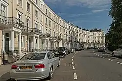 The name of the square, as well as the nearby Norland Place and Norland Road, come from the Norland Estate which is the historic name for the farmlands in the northern part of Kensington Parish.[1] It was designed by architect and property developer Robert Cantwell, who laid out the area in 1837, and was constructed during the early Victorian era.[2] Cantwell also oversaw the almost contemporaneous Royal Crescent, which was likewise developed from the old Norland Estate.[3] Since the 1820s, Cantwell had been involved in development plans for the larger Ladbroke Estate to the north.[4]