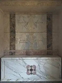 She is entombed in the Great Mausoleum at Forest Lawn Memorial Park in Glendale, California, in a crypt marked Norma Arrouge, along with her first husband, Irving Thalberg.
