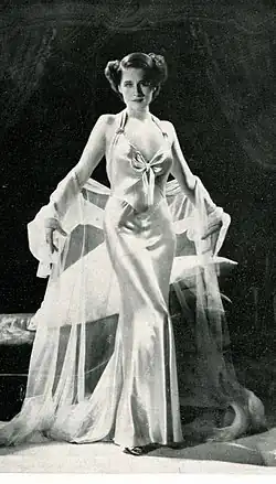 Shearer was of Scottish, English and Irish descent. Her childhood was spent in Montreal, where she was educated at Montreal High School for Girls and Westmount High School.[9] Her life was one of privilege, due to the success of her father's construction business. However, the marriage between her parents was unhappy. Andrew Shearer was prone to manic depression and "moved like a shadow or a ghost around the house."[10] Her mother was Edith Mary (née Fisher) Shearer.[11] Young Norma was interested in music, but after seeing a vaudeville show for her ninth birthday, she announced her intention to become an actress. Edith offered support, but as Shearer entered adolescence, she became secretly fearful that her daughter's physical flaws would jeopardize her chances. Norma Shearer "had no illusions about the image I saw in the mirror". She acknowledged her "dumpy figure, with shoulders too broad, legs too sturdy, hands too blunt", and was acutely aware of her small eyes that appeared crossed due to a cast in her left eye. By her own admission, she was "ferociously ambitious" even when she was young.[12]