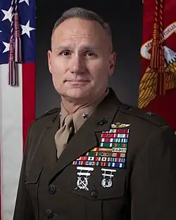 Cooling's notable staff assignments include serving as the Deputy Marine Liaison Officer to the U.S. House of Representatives; Director of the 31st Commandant of the Marine Corps’ Staff Group; Executive Assistant to the North Atlantic Treaty Organization's Supreme Allied Commander of Europe; Operations Chief for Regional Command Southwest (Afghanistan); Chief of Staff, II Marine Expeditionary Force;[9][17] Deputy Commander, United States Marine Forces Europe & Africa; Deputy Director, J-3 Plans & Operations for the U.S. European Command in Stuttgart, Germany[18] and legislative assistant to the 37th Commandant of the Marine Corps.