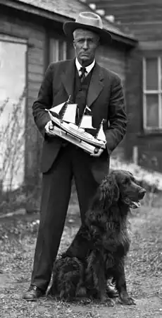 ![]() Norman Luxton holding a model of the Tilikum, 1923 | |