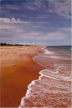 The North–South Trail (RI) is a 77-mile (124 km) hiking trail that runs the length of Rhode Island from the Atlantic Ocean in Charlestown to the Massachusetts border in Burrillville, Rhode Island. The trail is remarkably rural and scenic. Features include attractive lakeshores, bogs, beaches, hills, rock outcrops, farmland, and dense woodland.