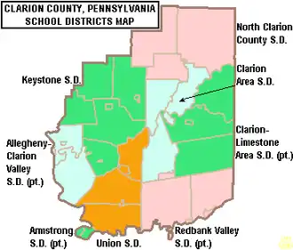 North Clarion County School District is located in Clarion County, Pennsylvania. It consists of the North Clarion County Elementary School with pre-kindergarten through grade 6 and the North Clarion County Junior/Senior High School serving students in grades 7 through 12.
