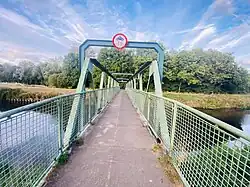 A footbridge crosses the Mersey above the weir, and it forms part of the Trans Pennine Trail walking and cycling route across England.