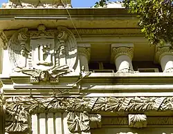 The limestone stone was used in the construction of the building which plays an important role in revealing the architectural image of the bank. This monumental building was built in the Baku Art Nouveau style and was executed at a high architectural level. The portal with the tectonics of plastic morphogenesis and a relief decorative mask is especially highlighted.