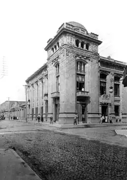 The bank building was built in 1903-1905.[2] It housed the Baku branch of the Banque du Nord, or Northern Bank.[3][4] After the merger of Northern Bank with the Russian-Chinese Bank, the Russian-Asian Bank was formed.[5] The Baku branch of it was also located in this building.[6][7] Currently, the edifice houses the central branch of the International Bank of Azerbaijan.