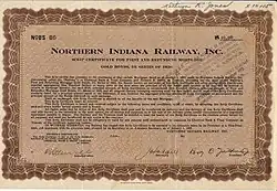 The Northern Indiana Railway was a South Bend, Indiana-based company which operated interurban and streetcar lines. At its peak it had interurban lines radiating out from South Bend to Michigan City and Goshen, Indiana, and through its Southern Michigan Railway affiliate to St. Joseph, Michigan,[1] plus streetcar lines in several cities. In St. Joseph trains of the NI met steamship lines from Chicago.[2]